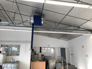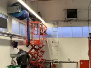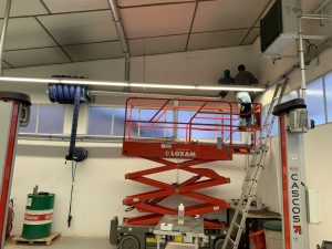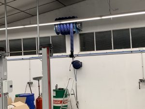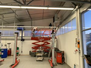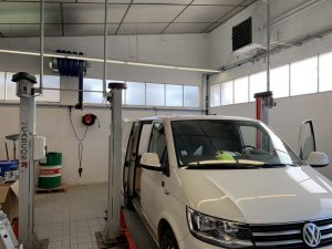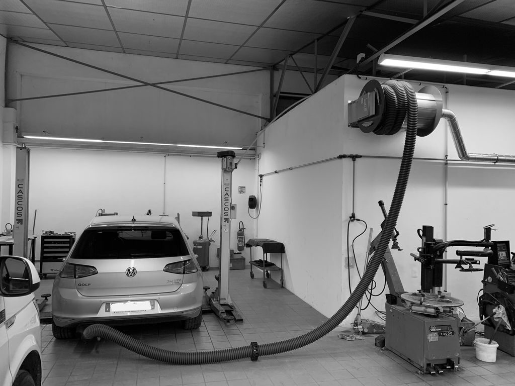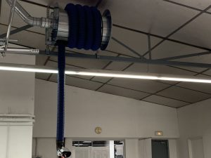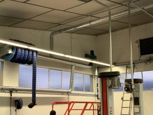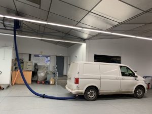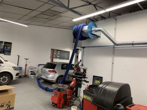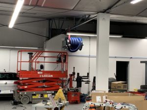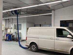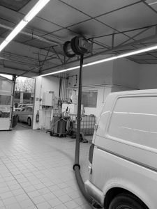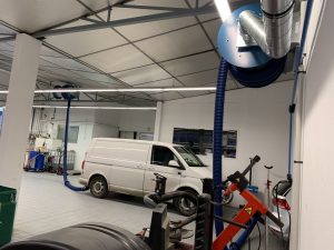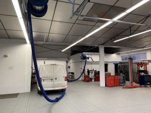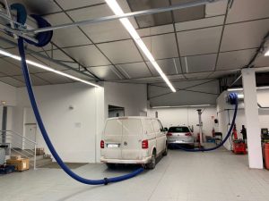 Installation d’un système d’extraction des gaz d’échappement, chez un distributeur Volkswagen Seat Skoda.