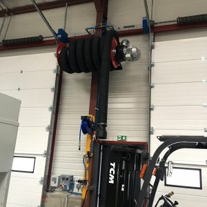 Enrouleur autonome pour l’aspiration des gaz d’échappements sur des véhicules PL et Engins divers