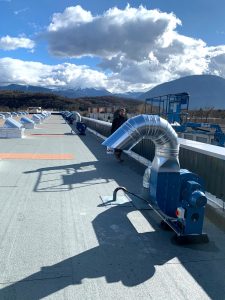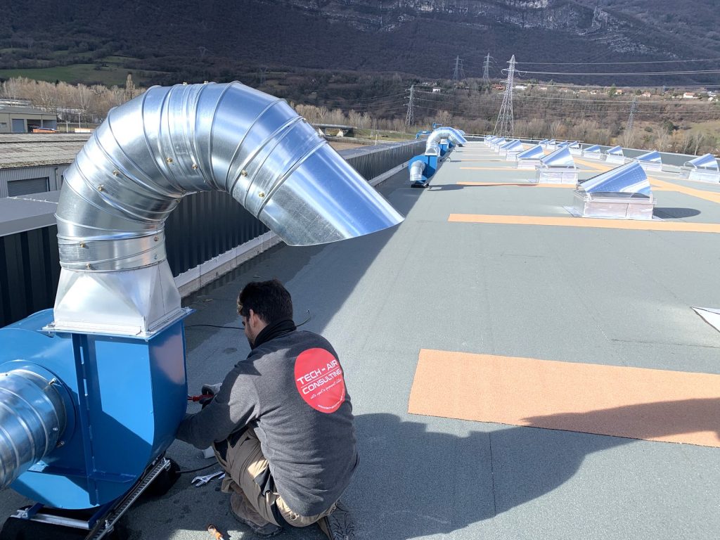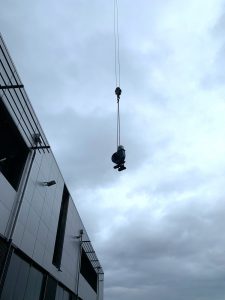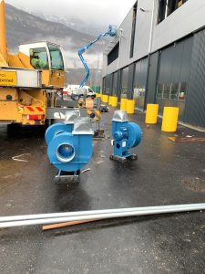 Malgré la pluie abondante, les équipes de TECH-AIR CONSULTING les ont installé à l’aide d’une grue. Le lendemain le temps plus clément nous a permis de finir la mise en place.