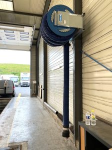 Installation d’un système d’extraction des gaz d’échappement, lors des contrôles des Chronotachygrpahes, sur des véhicules de type PL et Bus.